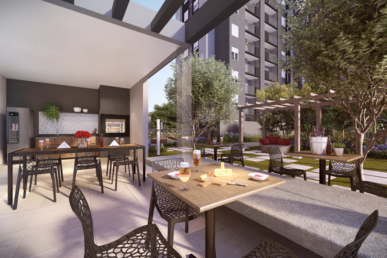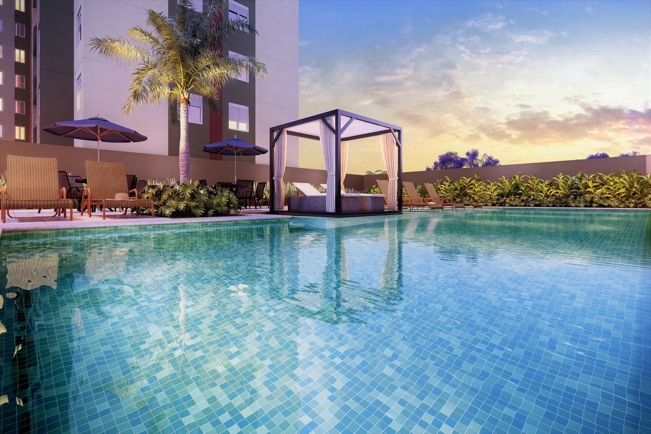 Empreendimento na Vila Maria com opções de lazer e segurança, incluindo piscina, playground e quadra poliesportiva.