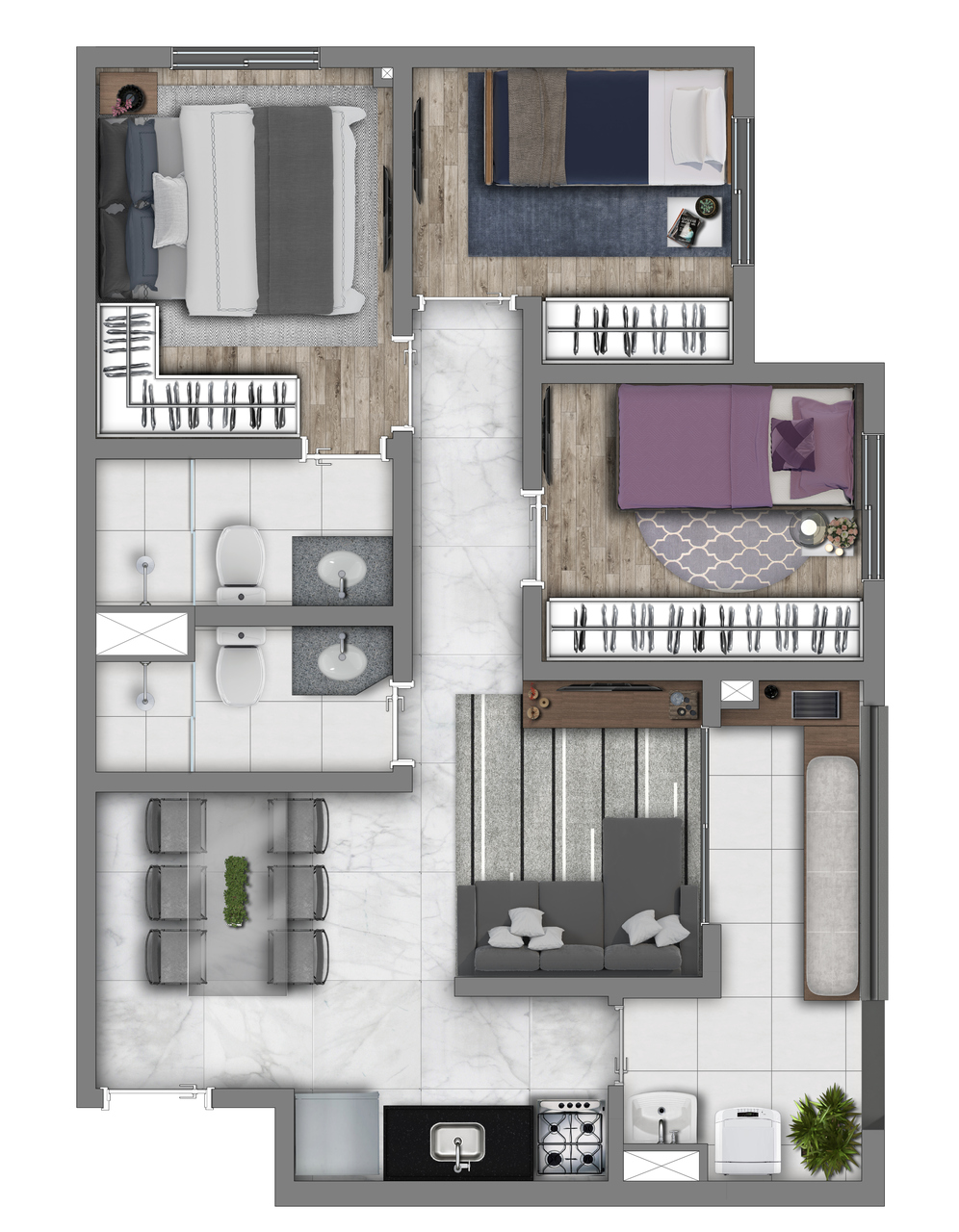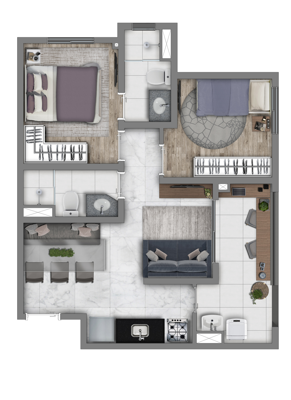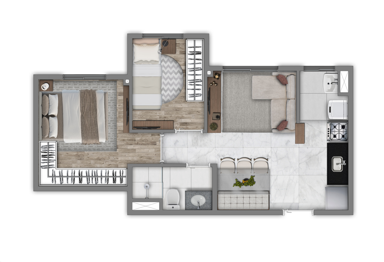 | Apartamento | 55,8 | 3 | 1 | 1 | R$ 502.170 |
