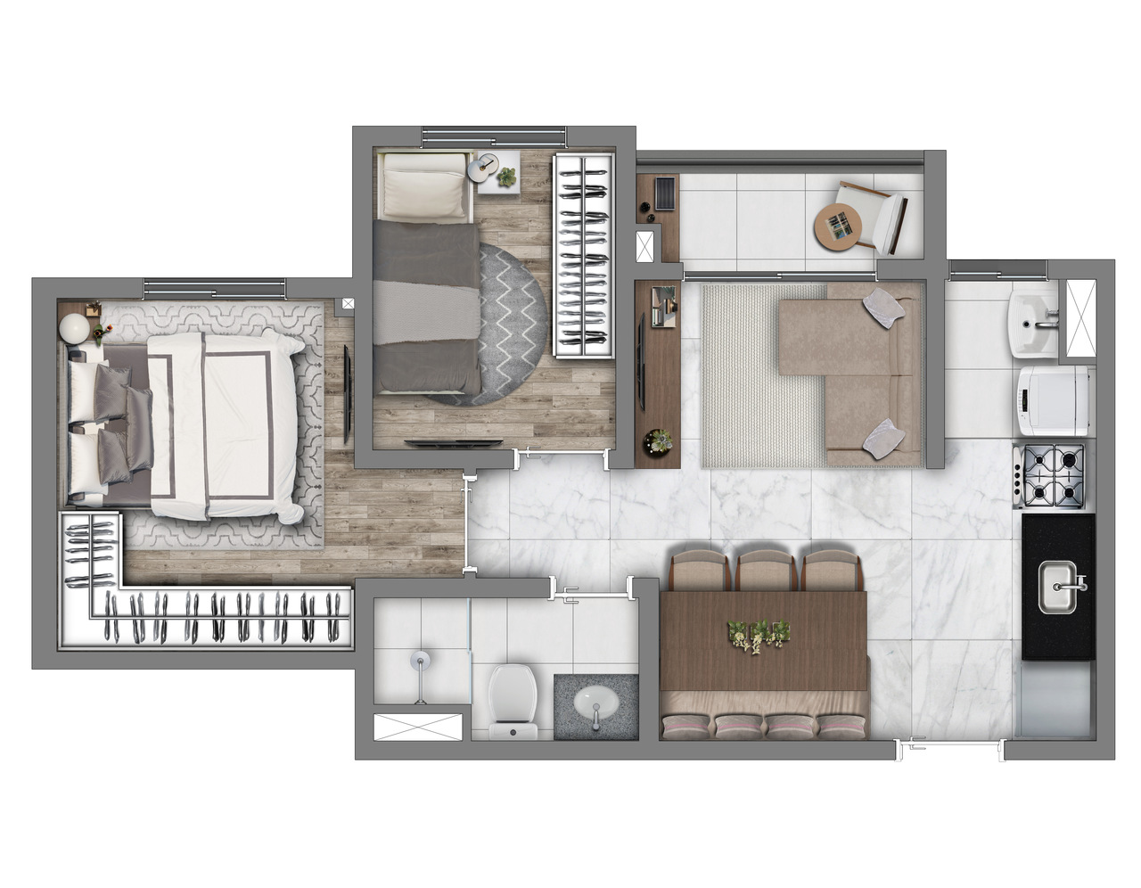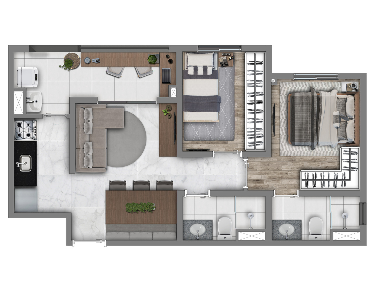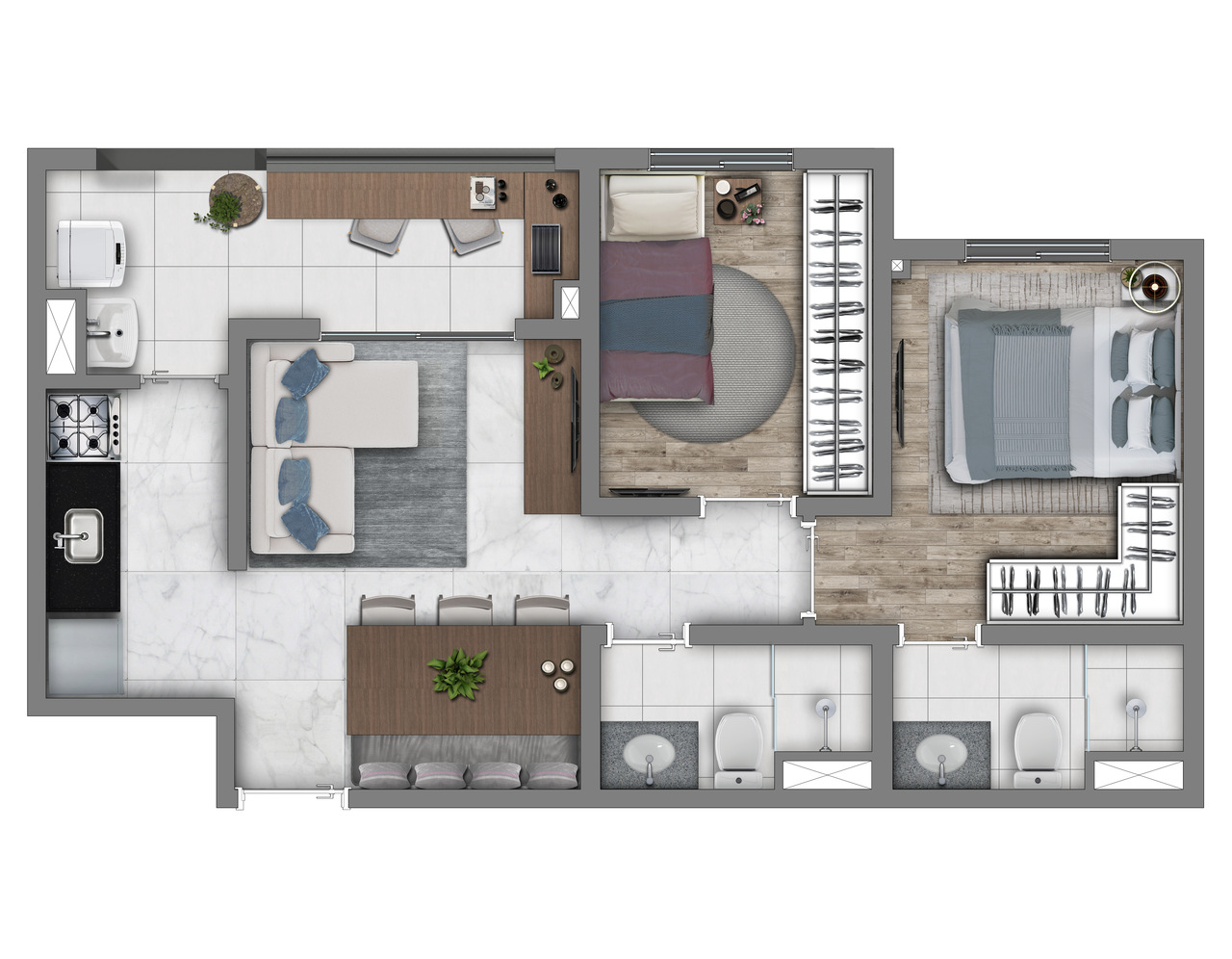 | Apartamento | 55,8 | 3 | 1 | 1 | R$ 502.170 |