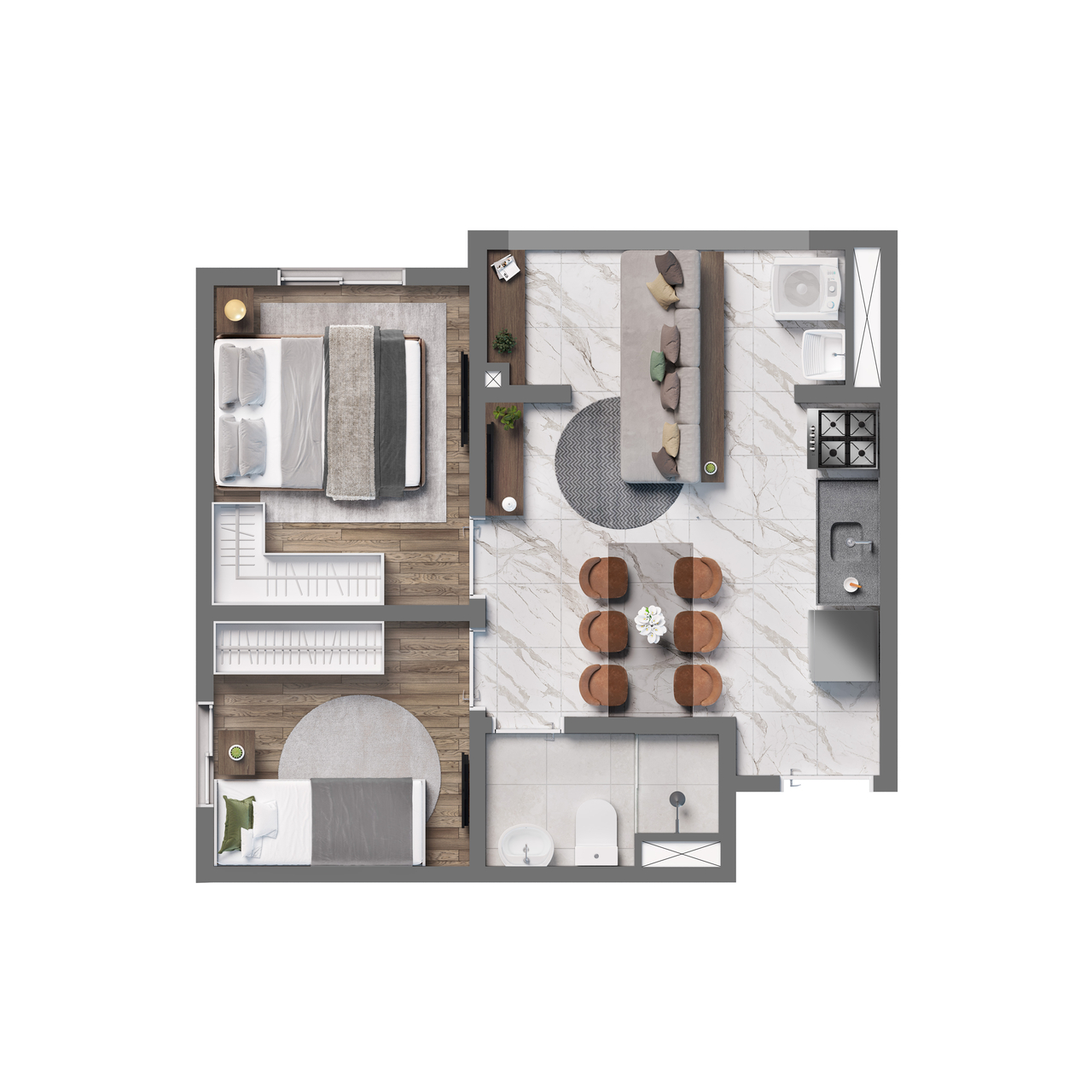 | Apartamento | 34,4 | 2 | 0 | 0 | R$ 297.761 |
