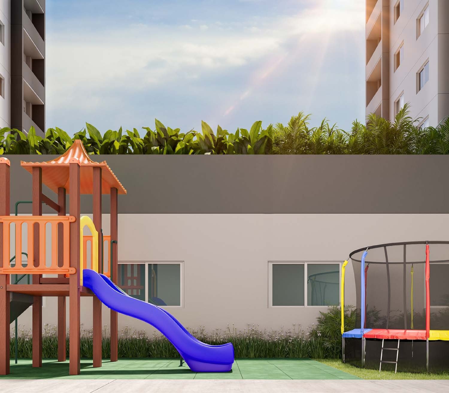 Empreendimento com infraestrutura completa, incluindo piscina adulto e infantil, playground e salão de festas.